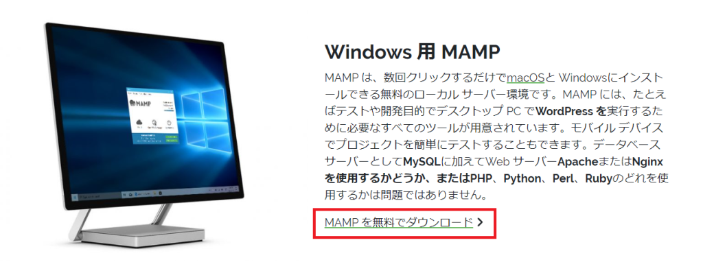 MAMP公式ページからインストーラーをダウンロード