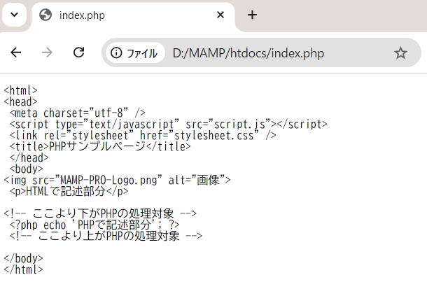 (普通にブラウザで見るときとMAMPで見るときの違いを確認するために見てみる)