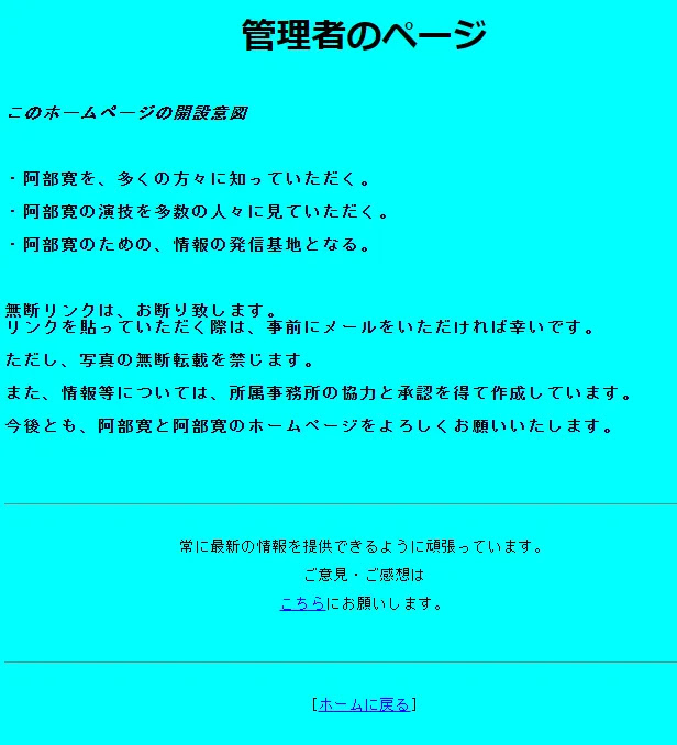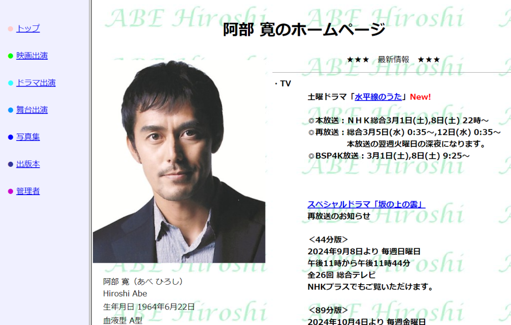現在は事務所公認の阿部寛公式サイトとして運営されている。