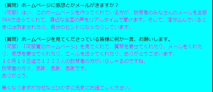 この通り阿部寛さんがファンが作ってくれたホームページをとても大切に思っていることがわかる。